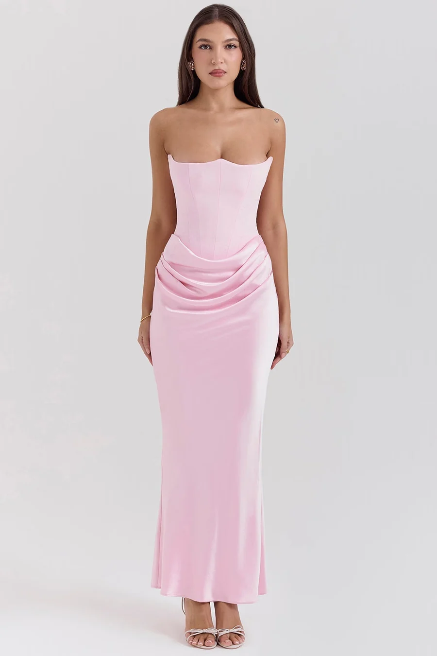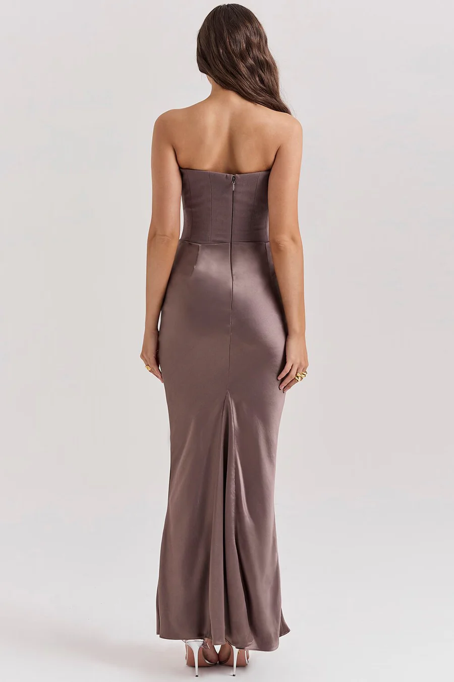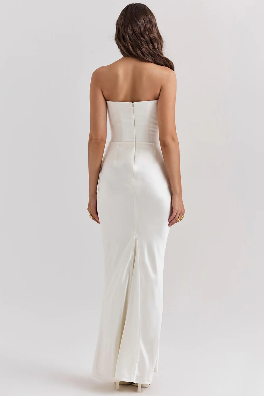 corset-style bodice and a floor-sweeping mermaid silhouette, it offers the